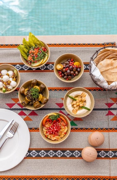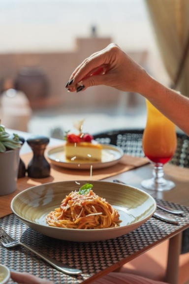 Ресторан курорта предлагает ближневосточную, локальную и международную кухню.
